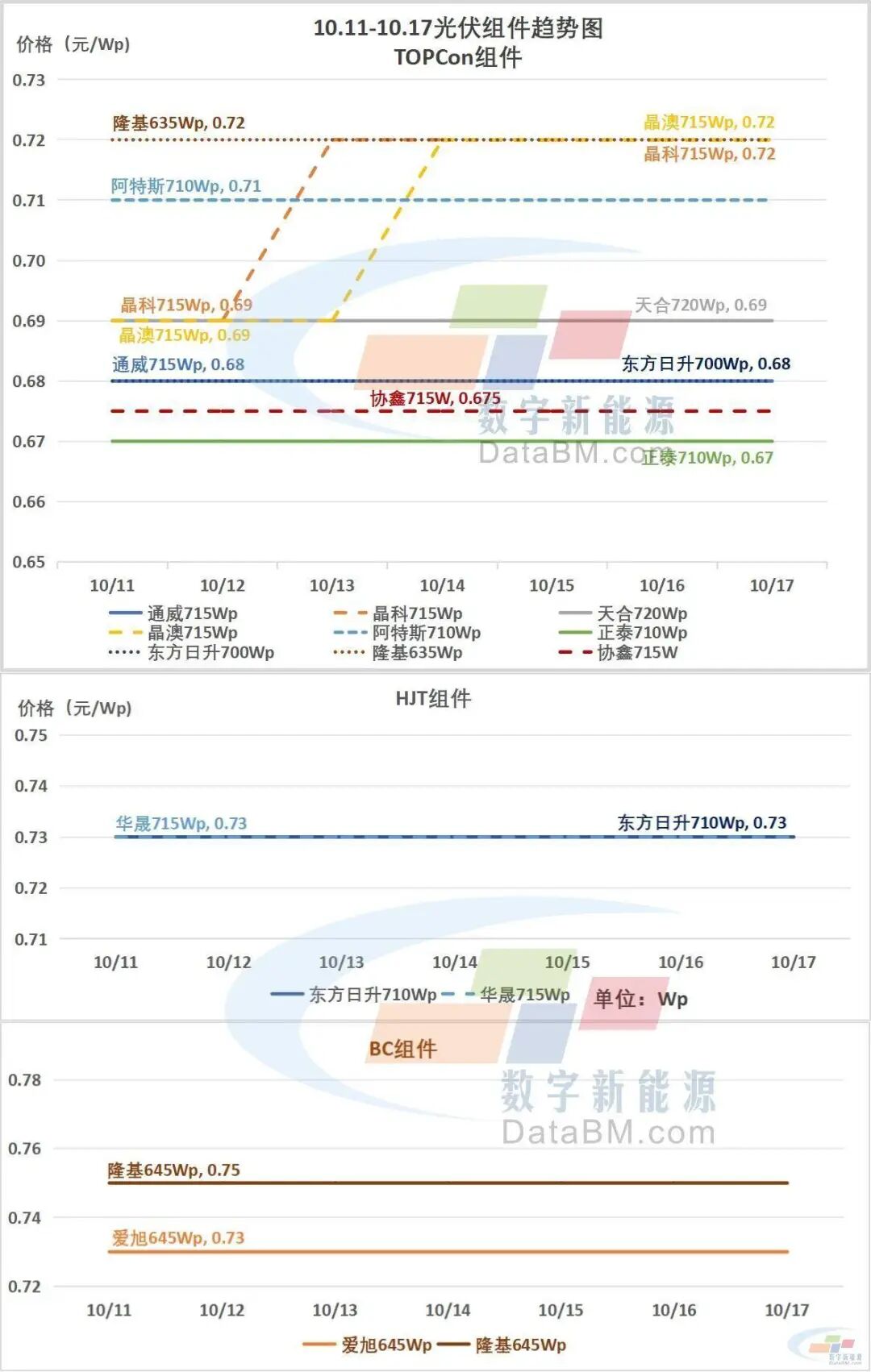 HJT组件:价格区间为0.69-0.75元/W。