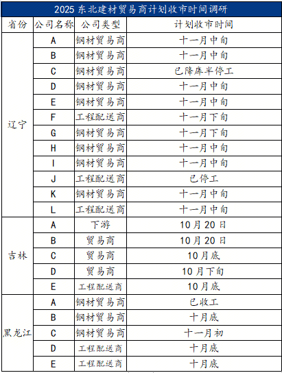 回顾2025年东北建筑钢材市场下半年,东三省需求减量明显,地区主流钢厂投放量增多,加之宏观和本地钢厂政策的影响,“金九银十”旺季不复以往。近期市场频传有部分商家会提前收市,为明年做准备,结合当前东北建材贸易商利润逐渐走低,甚至出现营收成本增加、经营状况不稳定、收缩规模的情况。本地建材贸易商对于今收市时间是否会有变化?以下为笔者调研部分贸易商对于收市时间的调整并作出简要分析: