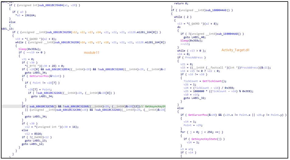 ▲ module11(左)与 Activity_Target.dll(右)代码同源性对比