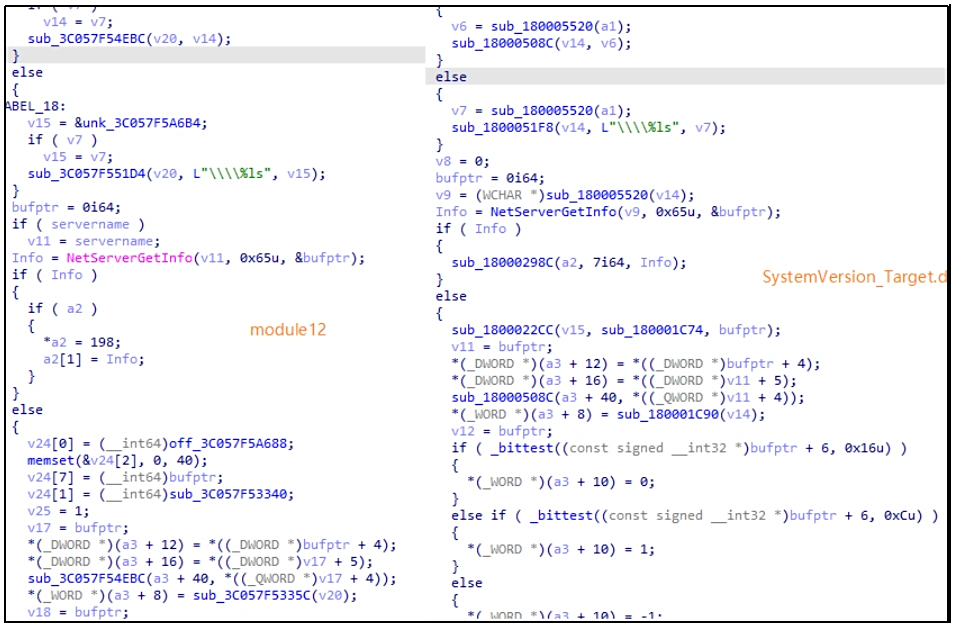 ▲ module12(左)与 SystemVersion_Target.dll(右)代码同源性对比