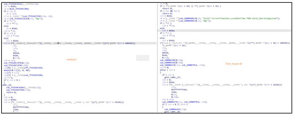 ▲ module2(左)与 Time_Target.dll(右)代码同源性对比