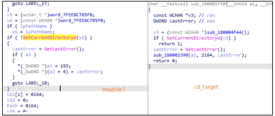 ▲ module1(左)与 Cd_Target.dll(右)代码同源性对比