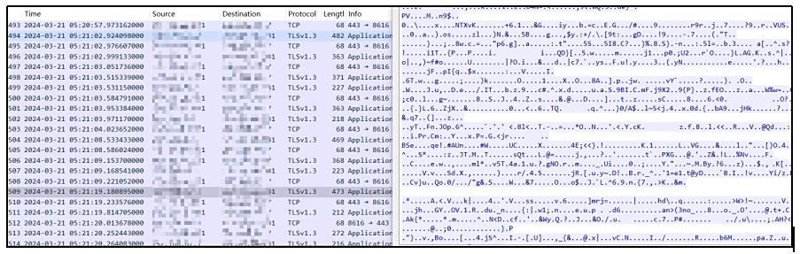 攻击者使用的 3 款网攻武器均采用 2 层加密方式,外层使用 TLS 协议加密,内层使用 RSA+AES 方式进行密钥协商和加密,在窃密数据传输、功能模块下发等关键阶段,各武器的相互配合实现了 4 层嵌套加密。此种多层嵌套数据加密模式与相比于“NOPEN”使用的 RSA+RC6 加密模式有了明显升级。