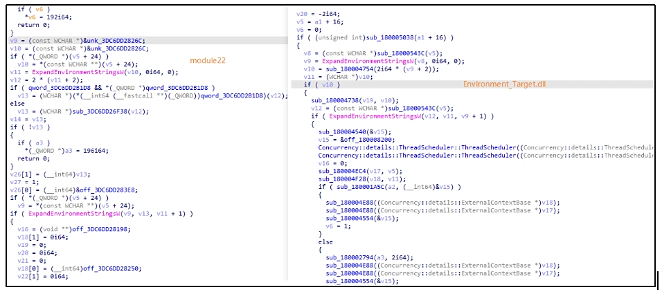 ▲ module22(左)与 Environment_Target.dll(右)代码同源性对比