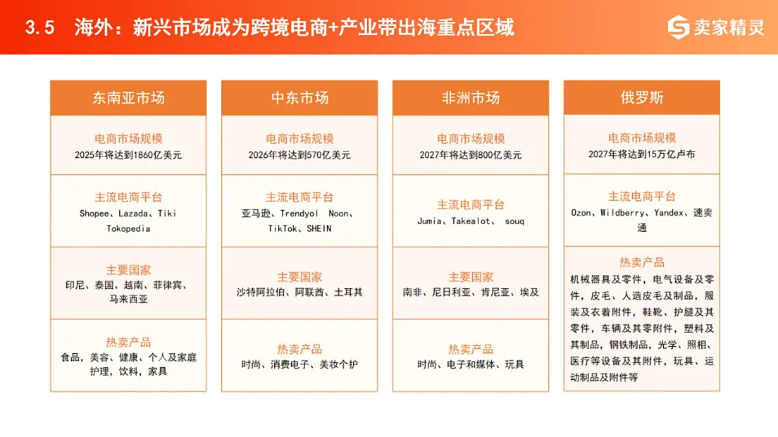 除了美国和欧洲,东南亚、中东、非洲这些地方,电商市场增长得特别快。