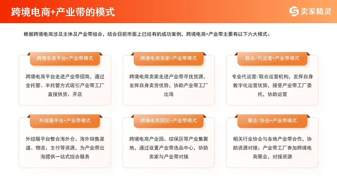 此外,卖家精灵 Wendy 还分享了跨境电商 + 产业带的 6 种模式,以及做得好的、比较成功的品牌。