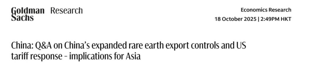 10月18日,高盛发布了一份研究报告,以问答形式回应了金融市场近期最为关心的稀土+关税问题。