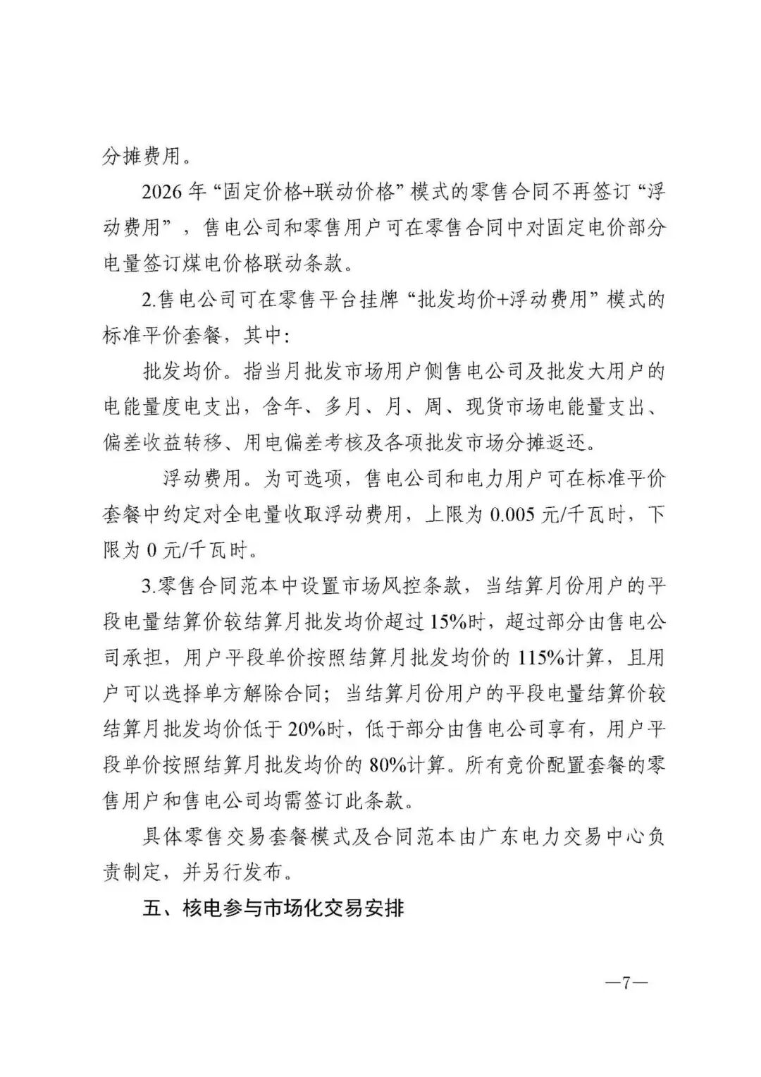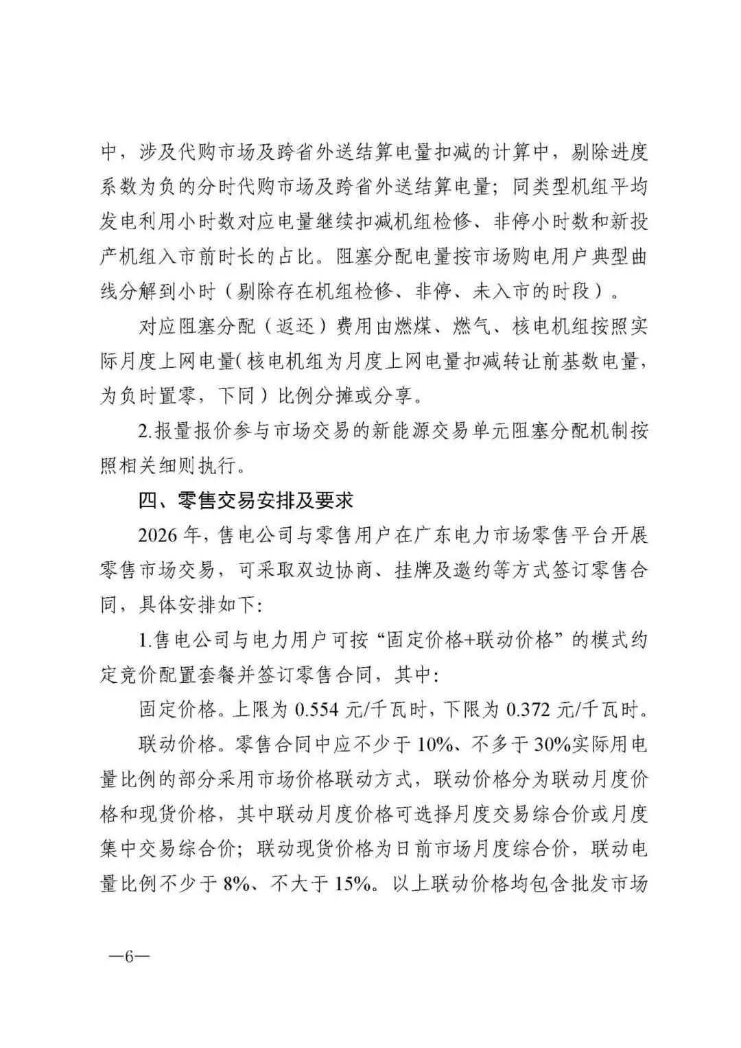 2026年“固定价格+联动价格”模式的零售合同不再签订“浮动费用”,售电公司和零售用户可在零售合同中对固定电价部分电量签订煤电价格联动条款。