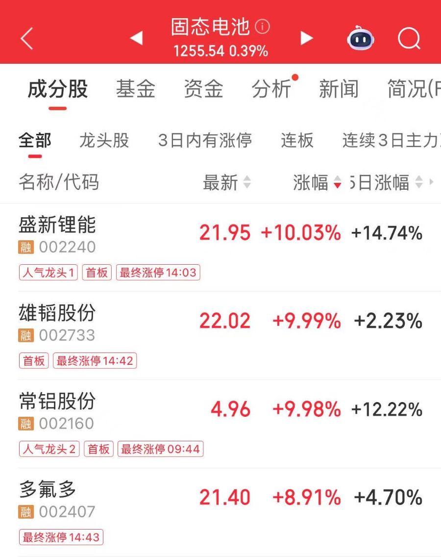 欣旺达推出新一代固态电池,雄韬股份等多股涨停