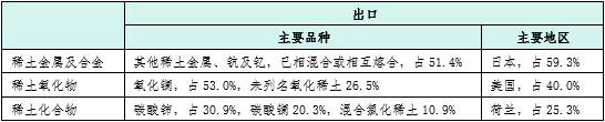 从出口目的地来看,1-9月,日本是我国稀土金属和合金的最大出口目的地,占59.3%;稀土氧化物出口目的地主要是美国和日本,占比分别为40%和31.2%;稀土化合物的出口目的地以荷兰、美国、中国台湾和日本为主,占比分别为25.3%、18.9%、16.4%和13.9%。