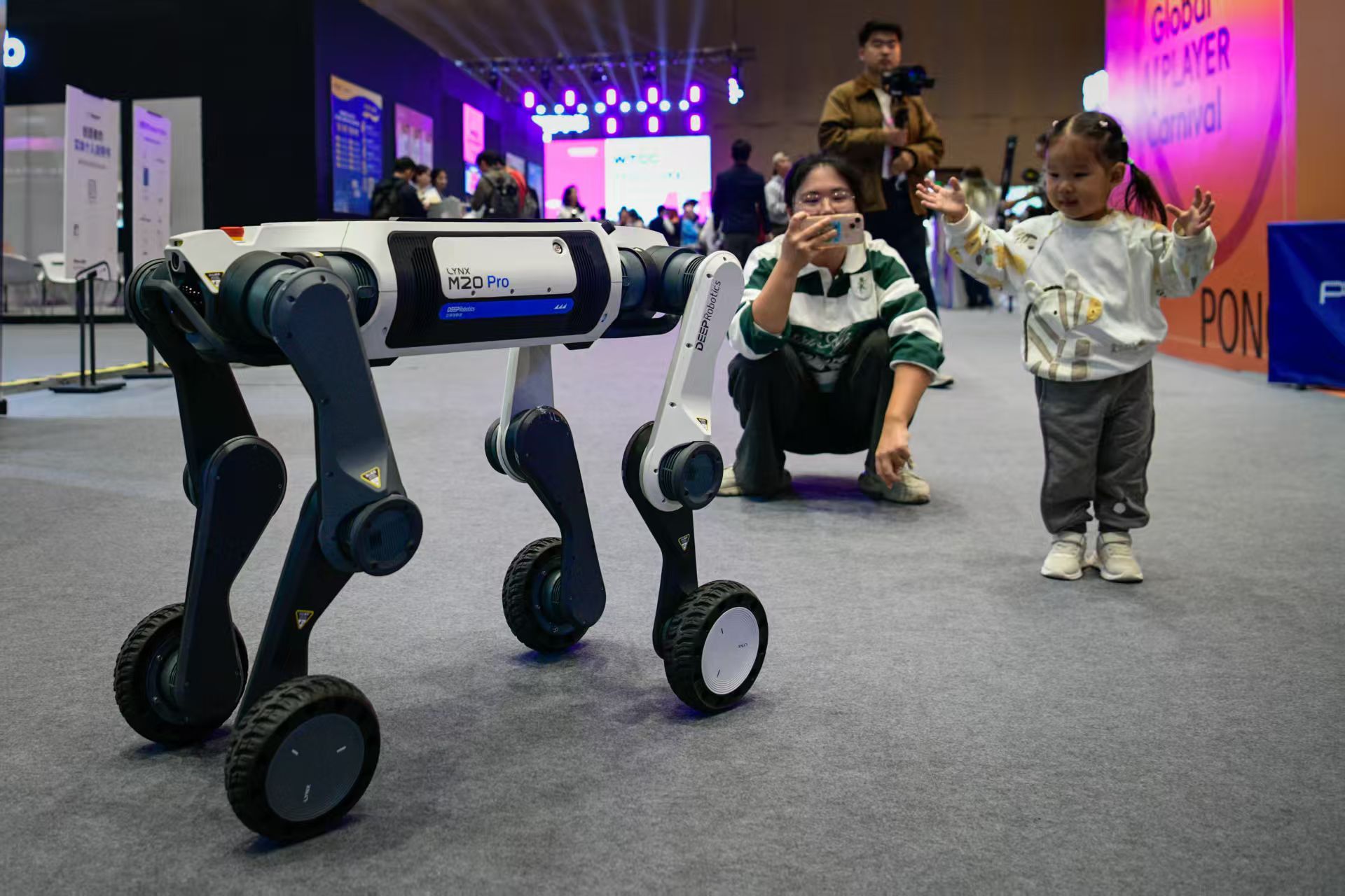 市民与机器狗互动。劳动报记者颜筱依摄影
