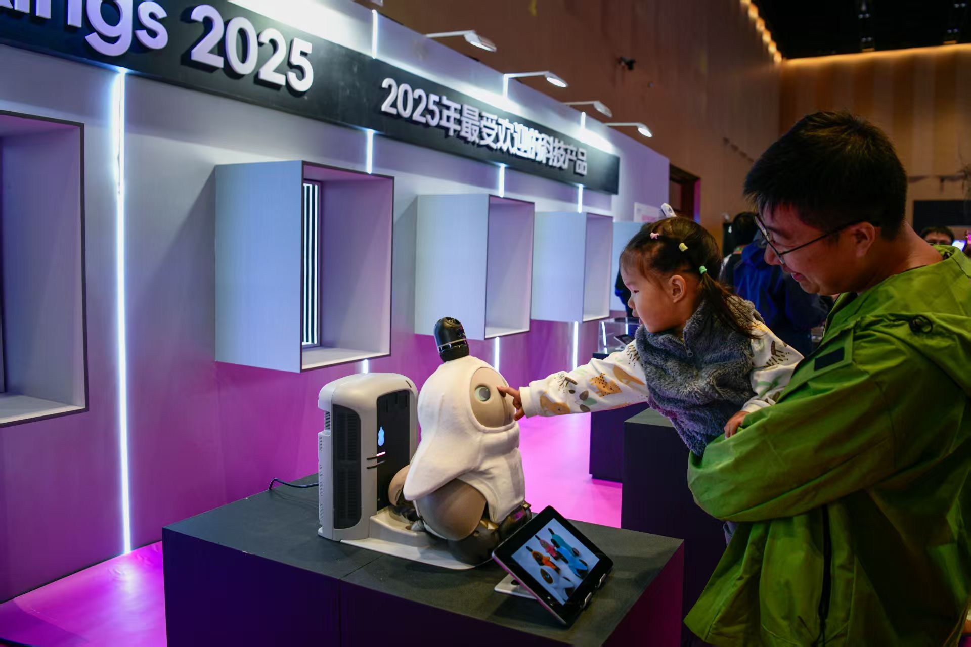 市民与“2025年最受欢迎AI产品”互动。劳动报记者颜筱依摄影