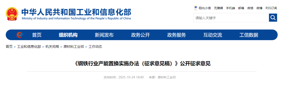 10月24日,工业和信息化部对《钢铁行业产能置换实施办法》(工信部原〔2021〕46号)进行了修订,研究形成了《钢铁行业产能置换实施办法(征求意见稿)》,现公开征求意见。