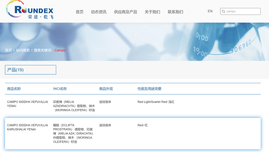 涉事红色原料的源头在哪儿?尽管“老爸评测”在视频中对相关原料供应商信息作了打码处理,但网友深挖后发现,涉事供应商为一家注册于新加坡的化妆品原料公司康博Campo Research(S)Pte. Ltd(下称“Campo”)。