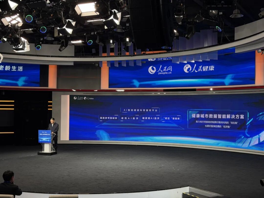 会上,主办方人民网总办会成员、人民健康董事长万世成致辞,万总介绍了如何通过AI技术赋能健康服务平台,打造集数据采集、分析与应用于一体的健康城市智能解决方案,旨在提升城市居民健康管理水平,推动智慧城市建设。