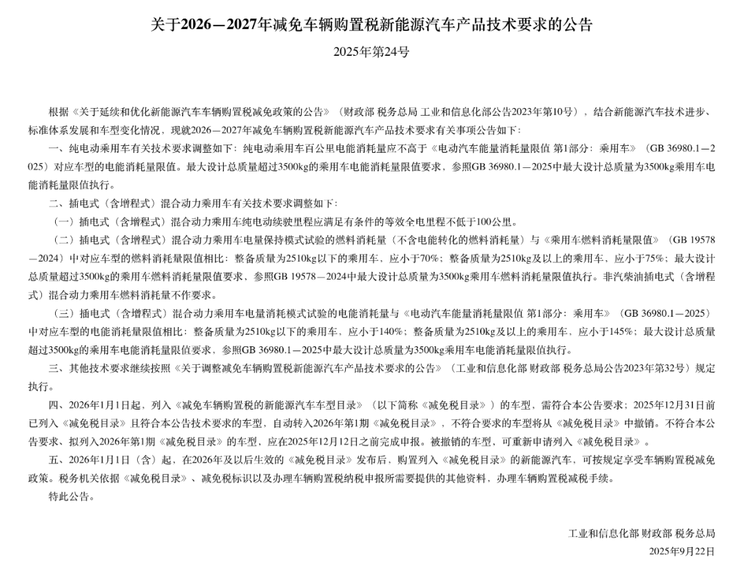 注意,明年买新能源车,购置税减免有新要求