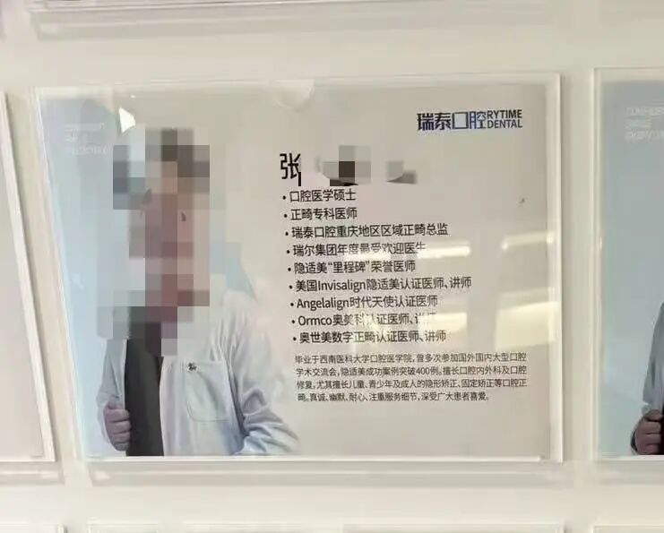 10月27日,康女士向封面新闻记者反映,她从2021年起在重庆一家瑞泰口腔诊所进行正畸治疗,矫正效果未达预期,且后来发现医生张某在诊所内公示的学历信息与实际不符,涉嫌虚假宣传。