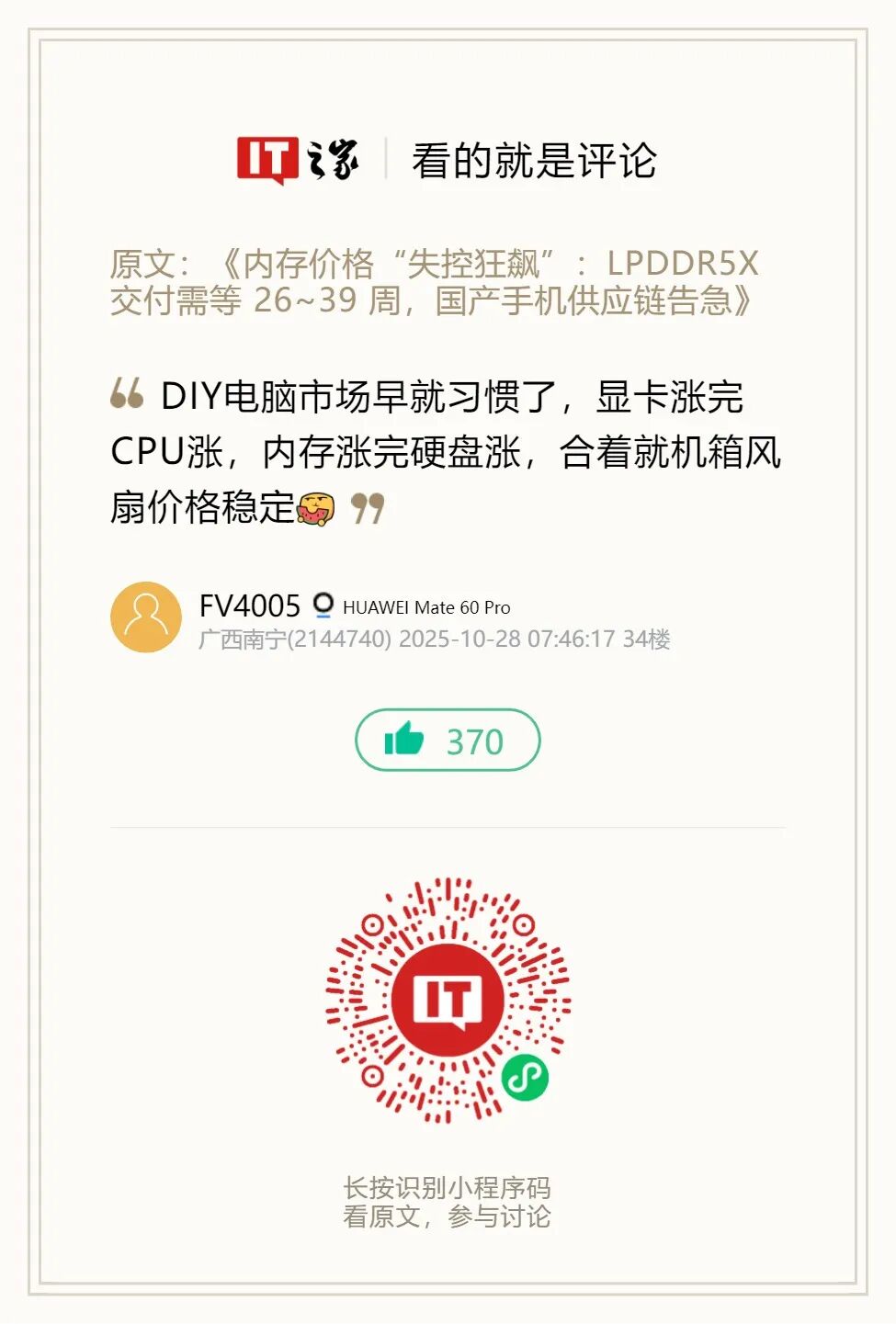 【神评】显卡涨完CPU涨,内存涨完硬盘涨,就机箱风扇价格稳定