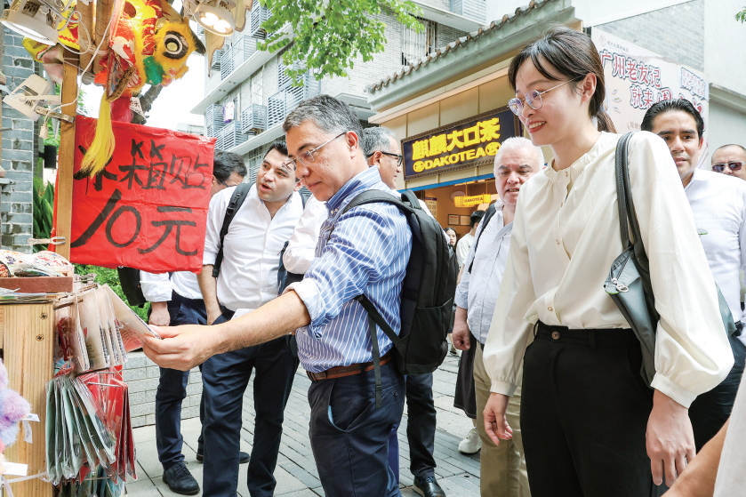 ▲图为南网国际秘鲁博路兹公司秘鲁籍员工到永庆坊了解岭南传统文化。