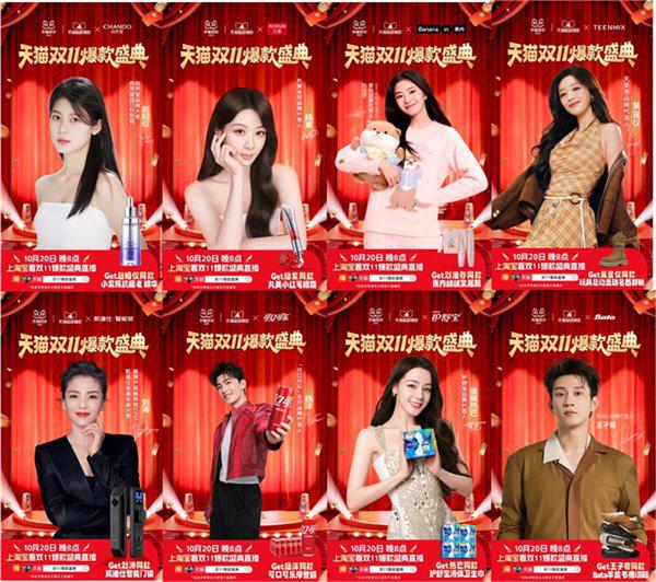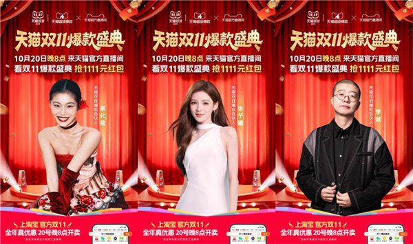 今年双 11,为了让更多爆款好物实现破圈,天猫联合百大品牌共同举办“双 11 爆款盛典”,在为期仅 3 天的全民投票中,就有数十万消费者为自己心目中的“口碑爆款”打投、拉票;活动期间,#天猫双 11 爆款盛典#等相关话题阅读全网曝光量近 20 亿,影响力一路延伸到线下,北上广深杭多城商圈大屏、100 城梯媒,同步点燃双 11,为爆款打 call;10 月 20 日,天猫双 11 开卖同样是双 11 爆款盛典当晚,天猫还联合商家、品牌代言人多方造势,在当晚的直播中,明星艺人、专业达人轮番空降直播间,共同打造直播狂欢氛围。