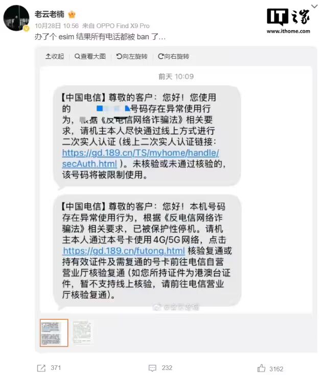 中国电信方面也表示,eSIM 只是一项通信业务,并未设有特殊的监控政策。至于用户为何会收到异常状态提示,需结合具体号码的使用情况进一步分析。