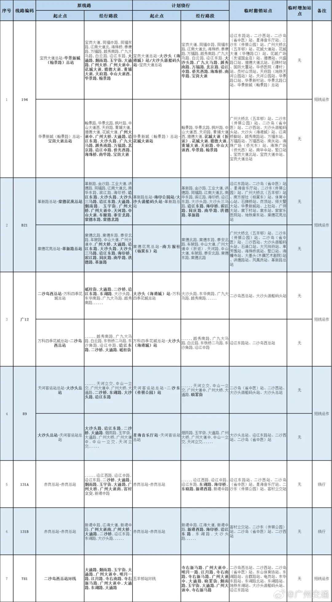 11月1日、9日,广州地铁调整;11月2日,广州公交调整