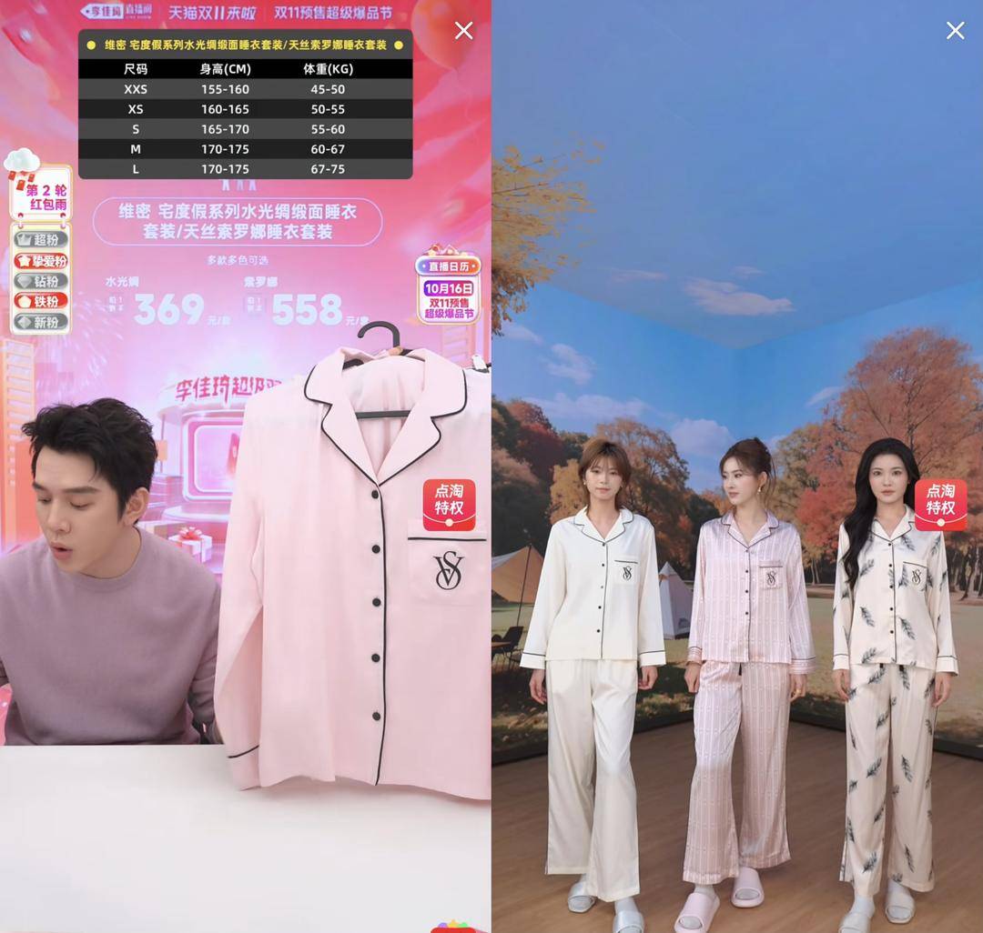 直播间数据显示,内衣与家居服成为今年大促增长最快的细分服饰品类,以维秘为例,首轮上架的6款单品中有3款迅速售罄,品牌整体销售增长超过200%,其中天丝棉柔睡衣与轻舒绒睡衣成为大促“现象级爆款”。