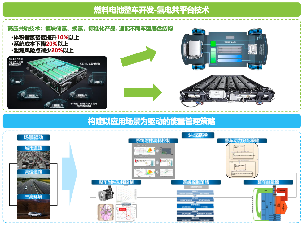 东风汽车集团有限公司研发总院氢能技术副总工程师张剑认为,整车氢耗量与使用场景紧密相关,市区、高速、“三高”环境下系统与整车控制策略存在差异。因此,需构建以应用场景为驱动的能量管理策略,从系统效率优化及控制、附件功耗,控制策略、动力分配及整车能量流分析等方面着手,开发基于动态平衡的能量控制策略,实现系统怠速零功率输出等功能,显著降低整车氢耗量。