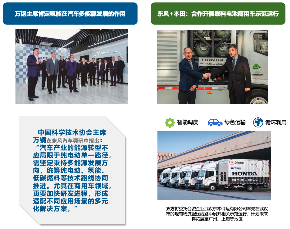 10月22日,东风与本田启动氢燃料电池商用车示范运行,基于东风在商用车领域的深厚积淀、本田的燃料电池技术展开合作。